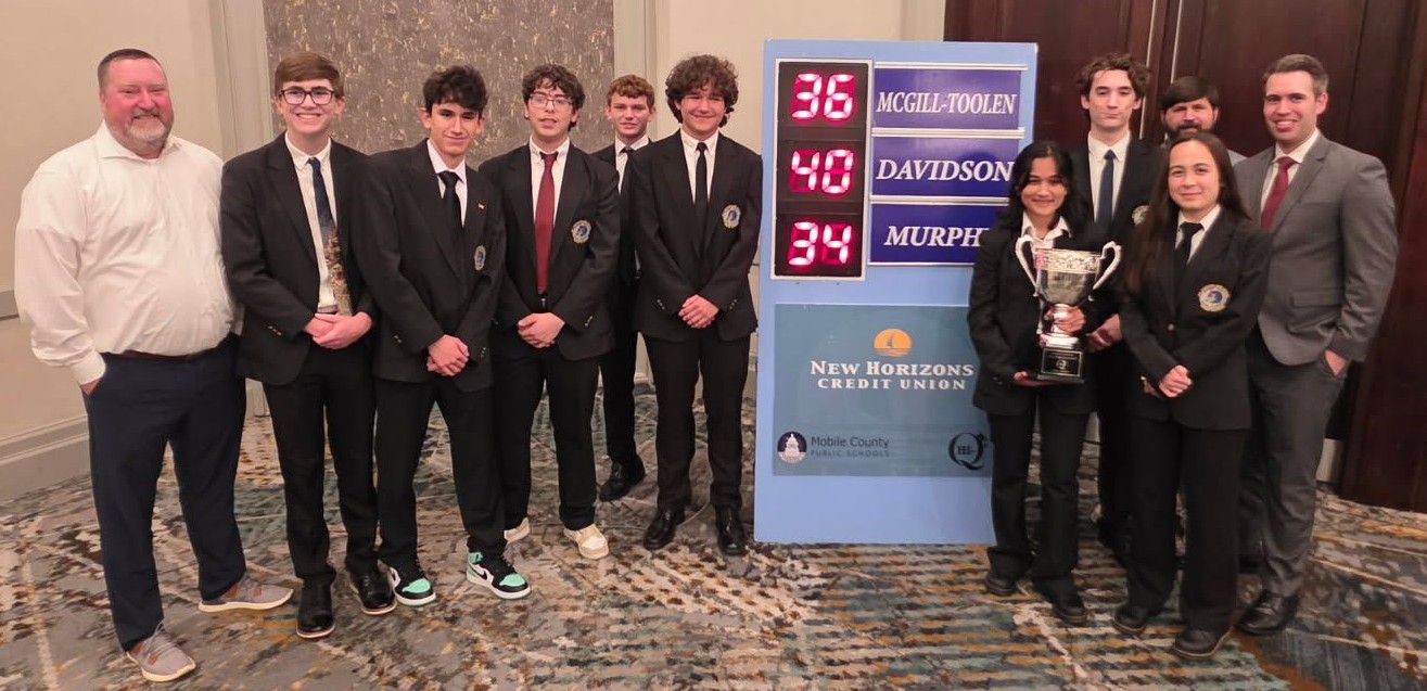 Congratulations to Davidson, the Hi-Q Champions! The Warriors faced semifinalists Murphy and McGill-Toolen in the academic competition. The championship match and the entire season featuring 18 local teams will air on mcpssTV this month. For Hi-Q, students are quizzed in areas ranging from American history to physics, from Shakespeare to geography, and from sports to math. |