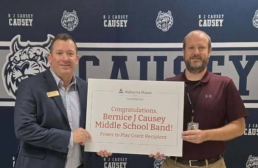 The Causey Middle School band has been awarded a $2,500 Power to Play grant from Alabama Power Foundation. The program, led by band director Kevin Threadgill, will use the funds to get new instruments and equipment. The Power to Play program supports music, arts, and athletic programs in Alabama schools and helps students shine both inside and outside the classroom. |