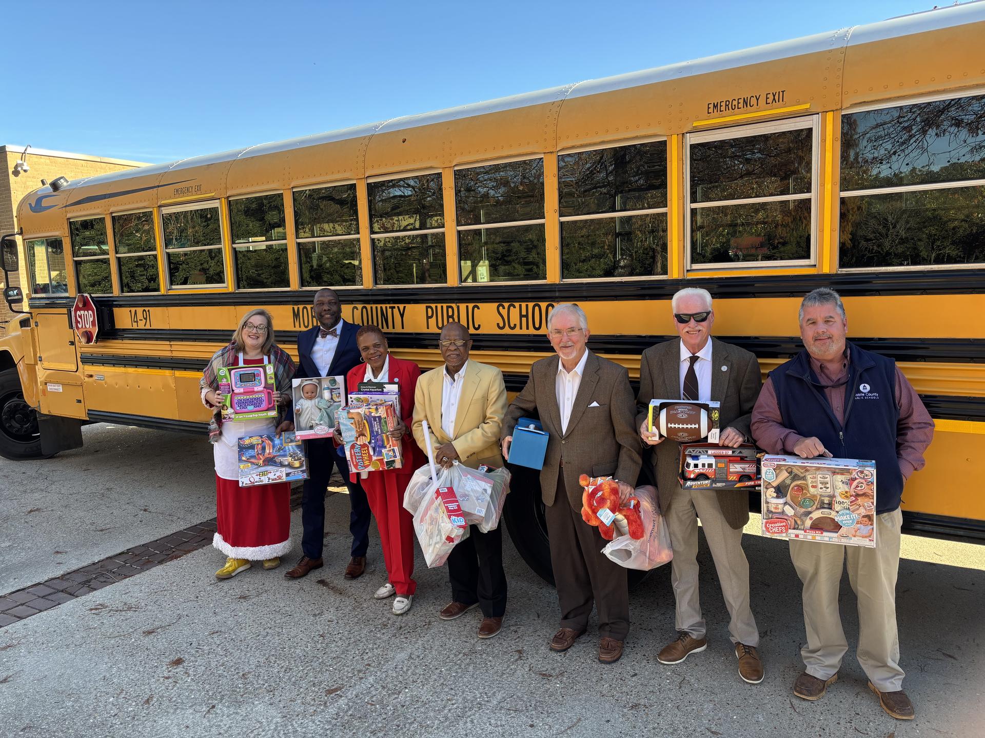 #TeamMCPSS gave back to the community with a very successful district-wide toy drive! The annual Stuff the Bus campaign, with two school buses, Santa and Mrs. Claus and a host of volunteers, collected about 6,200 toys and gifts from 45 schools and Central Office over two days. At Central Office, the Board of School Commissioners joined Superintendent Chresal D. Threadgill and the Central Office employees to donate to the cause. The Office of Communication would like to give special recognition to the students and staff at Grand Bay and Alba Middle Schools, who went above and beyond with their Stuff the Bus donations: Grand Bay Middle donated more than 1,300 toys, and Alba donated more than 500. Great job!