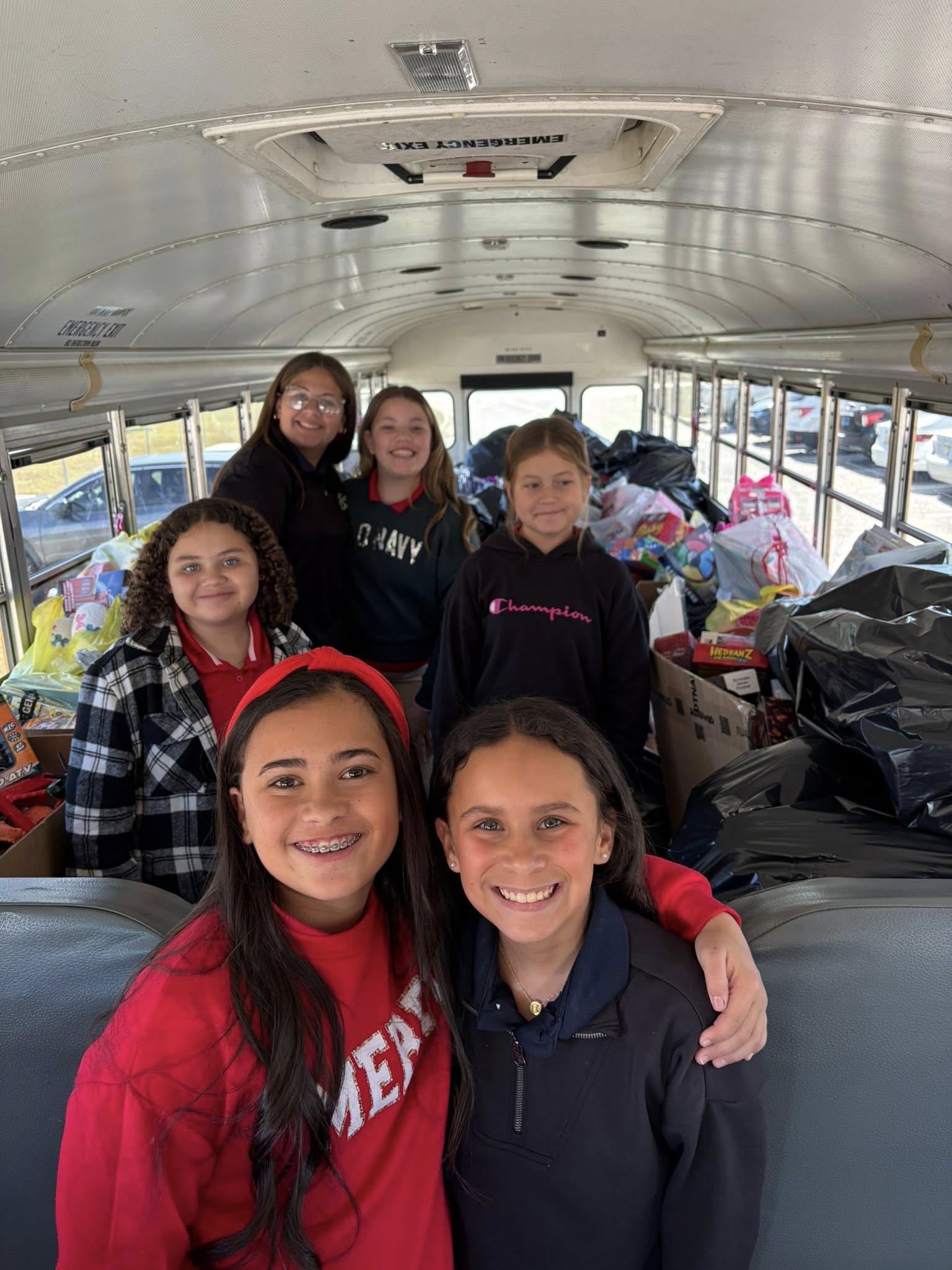 The Stuff the Bus campaign benefits needy students in the school system, and excess donations are given to the Salvation Army to be distributed to children throughout Mobile County. Special thanks to Mr. and Mrs. Claus (Gary McGilberry and Joy McGough); Mike Herndon, Public Relations Specialist in the Office of Communication, who coordinates the drive; the MCPSS Department of Transportation, which supplied the buses and drivers; and to Burns Middle School LOTC cadets, who unloaded and sorted the toys and donations.
