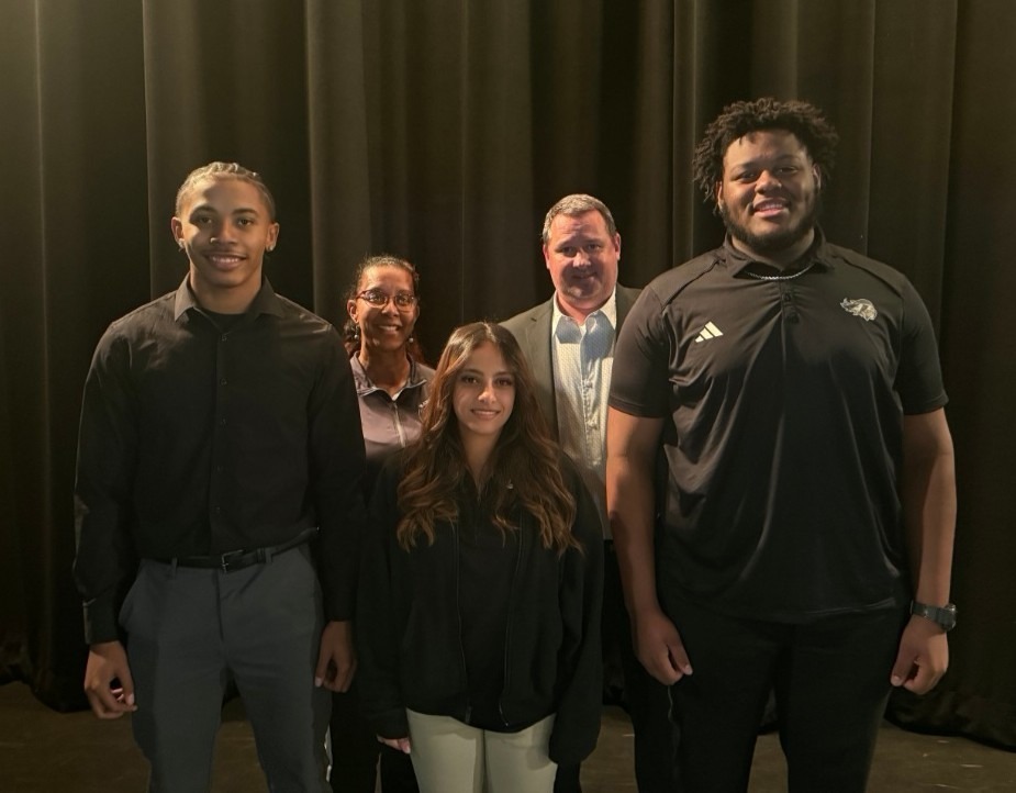 Congratulations to Davidson High students who signed athletic scholarships: Football players Dylan Dunigan (left) and Kamron Mitchell (right), who signed with Huntingdon College and East Central (Miss.) Community College, respectively; and soccer player Lamar Najem (center), who signed with United States Sports University. |