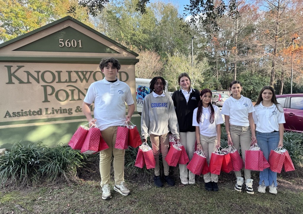 Student Council members from Hankins Middle School visited the Knollwood Pointe Assisted Living facility Memory Care Unit. Students delivered gifts and shared meaningful time with residents by singing, dancing, and playing bingo.