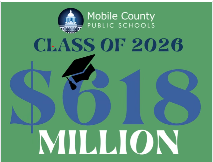 Through a new statewide initiative called Alabama Possible, the Mobile County Public Schools Class of 2026 has now received more than 20,000 college acceptance letters and a record $618 million in scholarships. Students were invited to apply to multiple colleges through the program, and were “matched” with 12,000 admissions offers and $250 million in scholarships from Alabama colleges and universities earlier this month. After offers from out-of-state colleges and universities came in at all 12 MCPSS high schools, the total increased to $618 million. MCPSS leads Alabama in scholarship offers through this program.