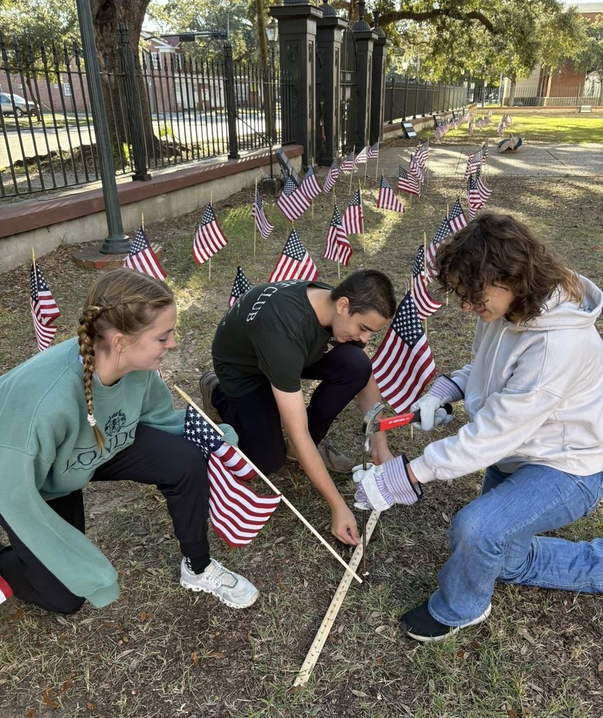Members of the INTERACT club at Barton Academy for Advanced World Studies assembled the school's field of flags after raising nearly $1,000 toward Disabled American Veterans field of flags project. Barton students also recently raised a new American flag donated by the Tristan de Luna Chapter of the National Society of Daughters of the American Revolution. |