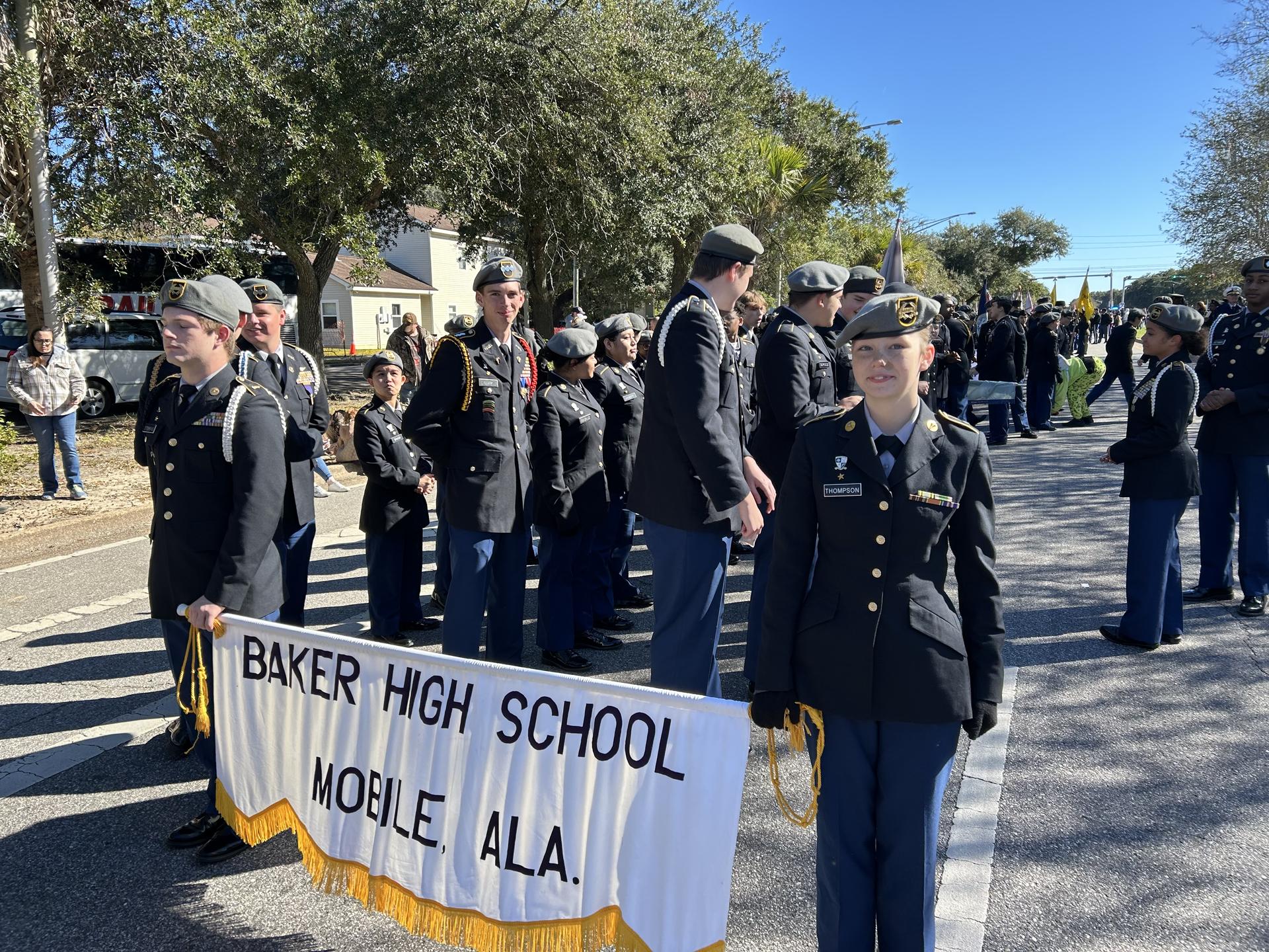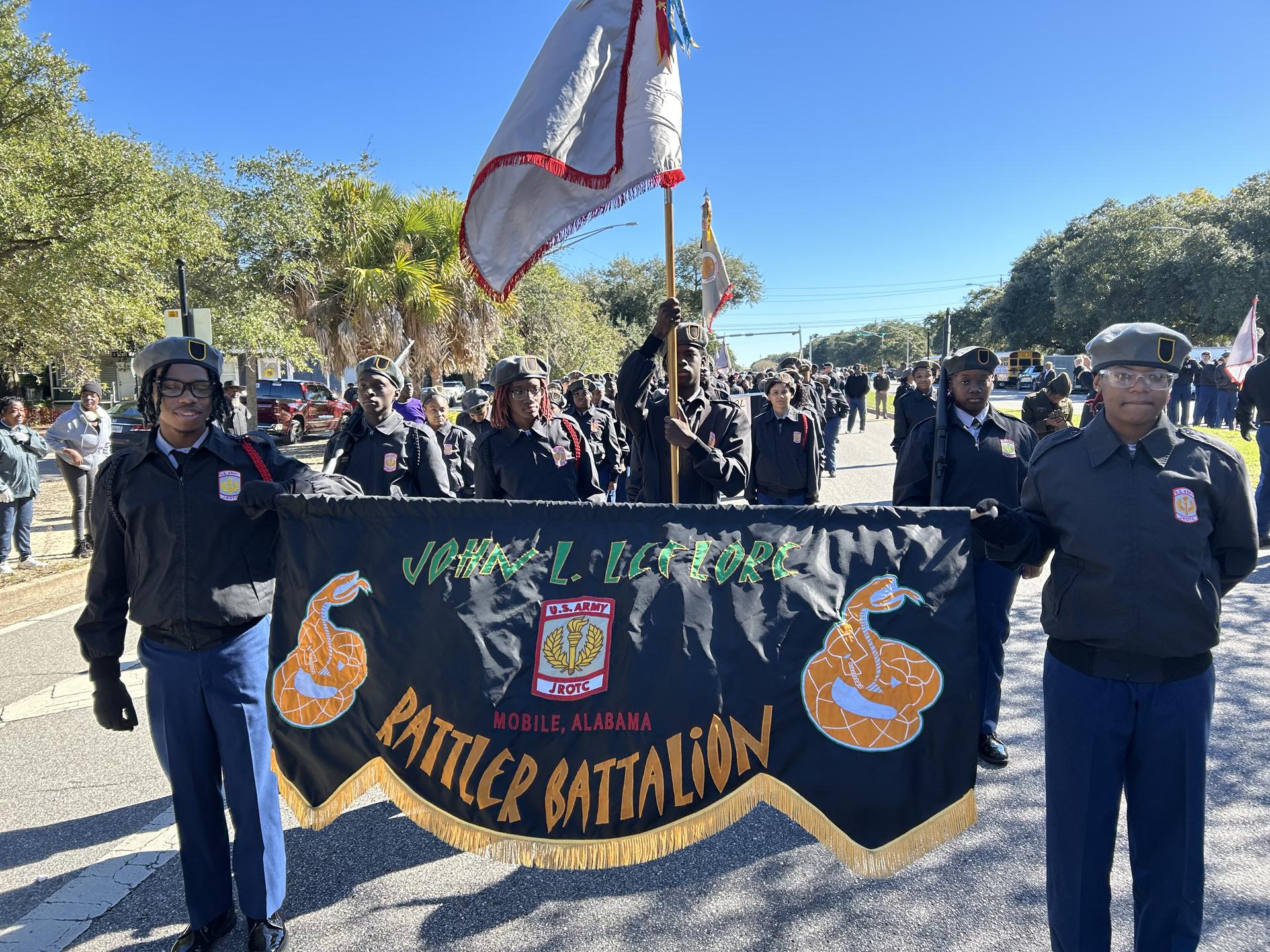 MCPSS students honored those who served by participating in Veterans Day events throughout Mobile County. Students from all 12 JROTC high school programs and LOTC students from 13 middle schools marched in the Citronelle and Mobile parades. The Citronelle High JROTC also visited veterans at Crowne Nursing Home. Bands from Davidson, Theodore, Vigor and Williamson performed in the Mobile parade, and the MGM band performed at the Parade of Flags Concert at the USS Alabama Battleship Memorial Park.