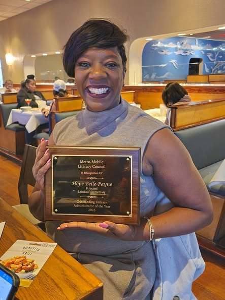 During its fall meeting, the Metro Mobile Literacy Council honored three MCPSS educators for their exceptional contributions to literacy: Hope Belle-Payne, Principal of Leinkauf Elementary School (left), 2025 Outstanding Literacy Administrator Rebecca Howard of Dixon Elementary School (center), 2025 Outstanding Literacy Teacher Lisa Davis of Nan Gray Davis Elementary School (right), 2025 Outstanding Literacy Coach Congratulations to these fantastic educators!