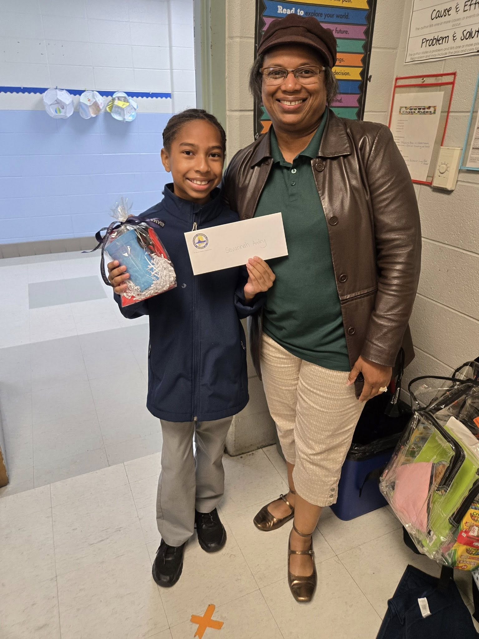 Savannah Andry (right), a fourth-grader at Eichold-Mertz Magnet, won first place in the Mobile Bay Area Veterans Commission's Veterans Day Essay Contest, and Patricia Cushman, a fourth-grader at Council Traditional, placed second. Council Traditional fourth-graders led the Parade of Flags at the USS Alabama.