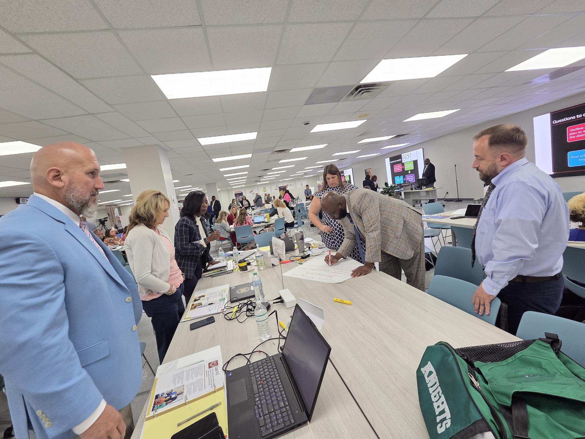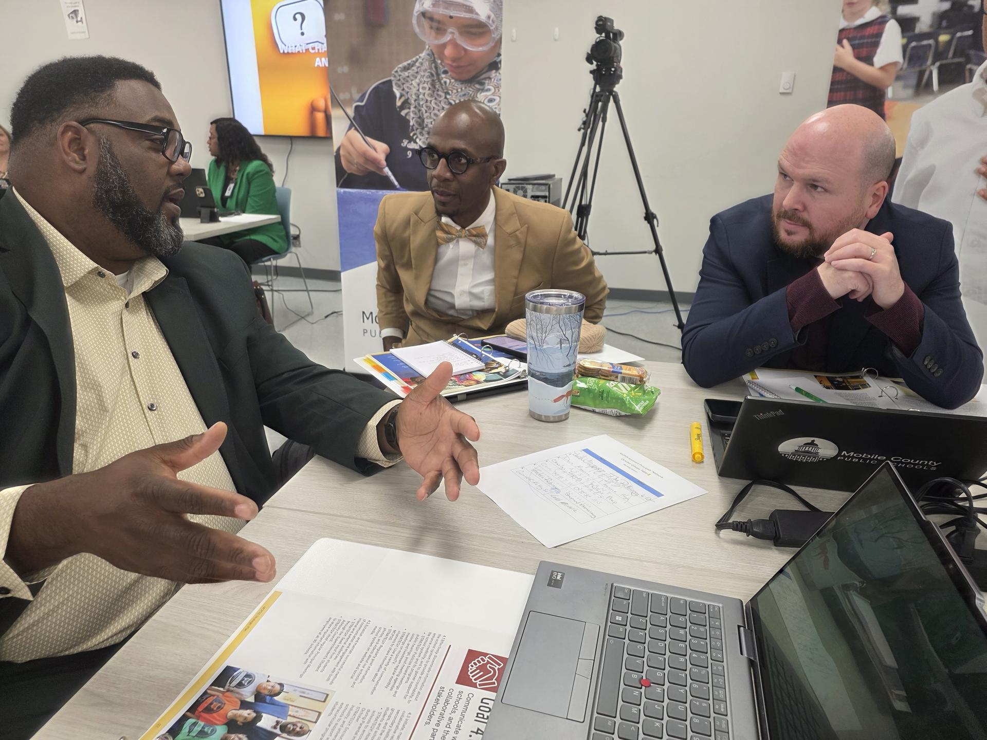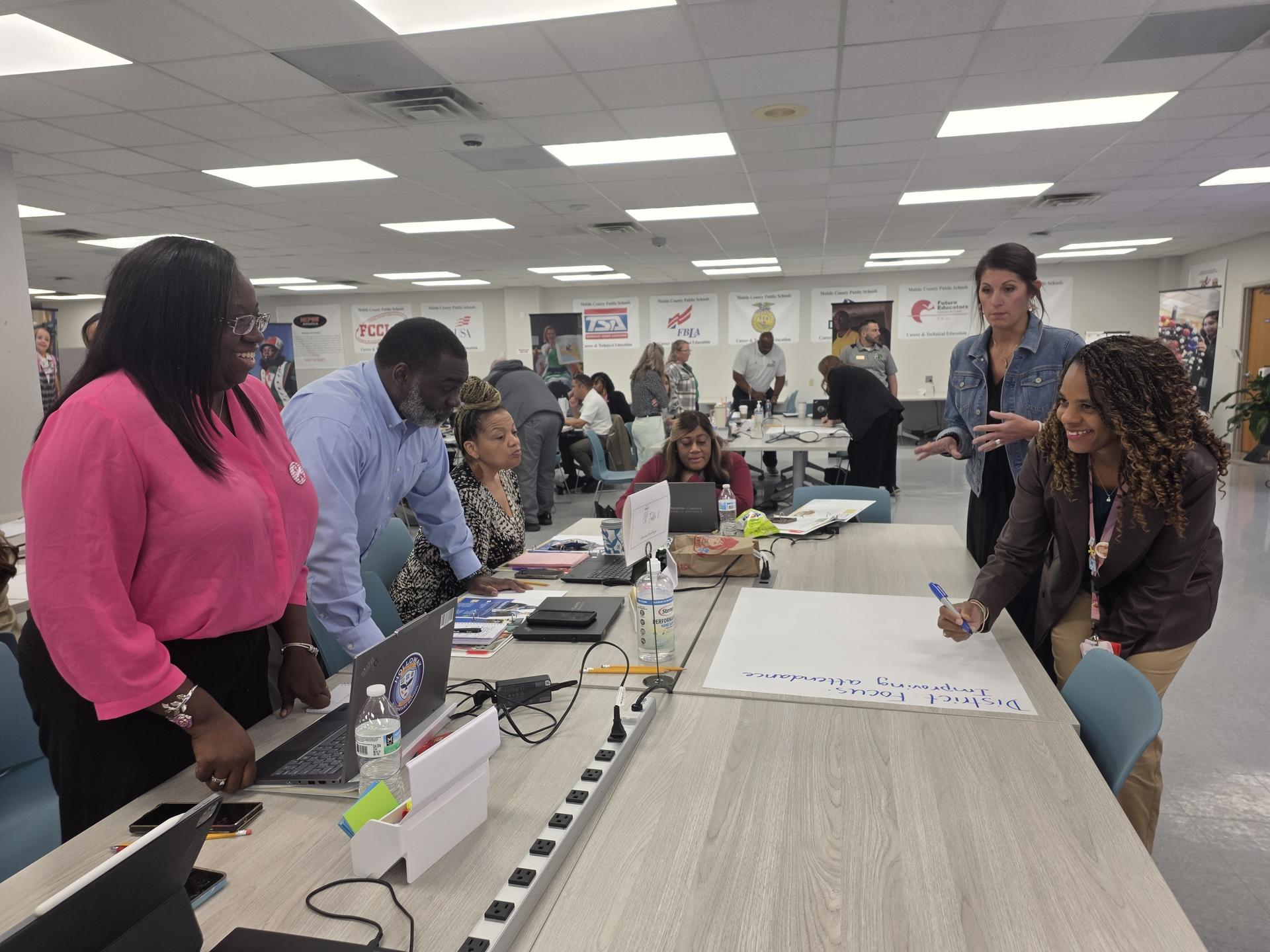 Superintendent Chresal D. Threadgill and his Leadership Team have launched a new professional development program called the MCPSS Assistant Principals Network. More than 100 assistant principals from schools across Mobile County will meet monthly to hone their leadership skills and to learn about the state standards for school leadership. Their first meeting was held last week at the Cypress Auditorium, covering topics including Strategic Planning for Improvement; the Administrator’s Role in Assessing Needs; and Professional Ethics. They learned how to respond to scenarios they may encounter, and also participated in leadership lab. |