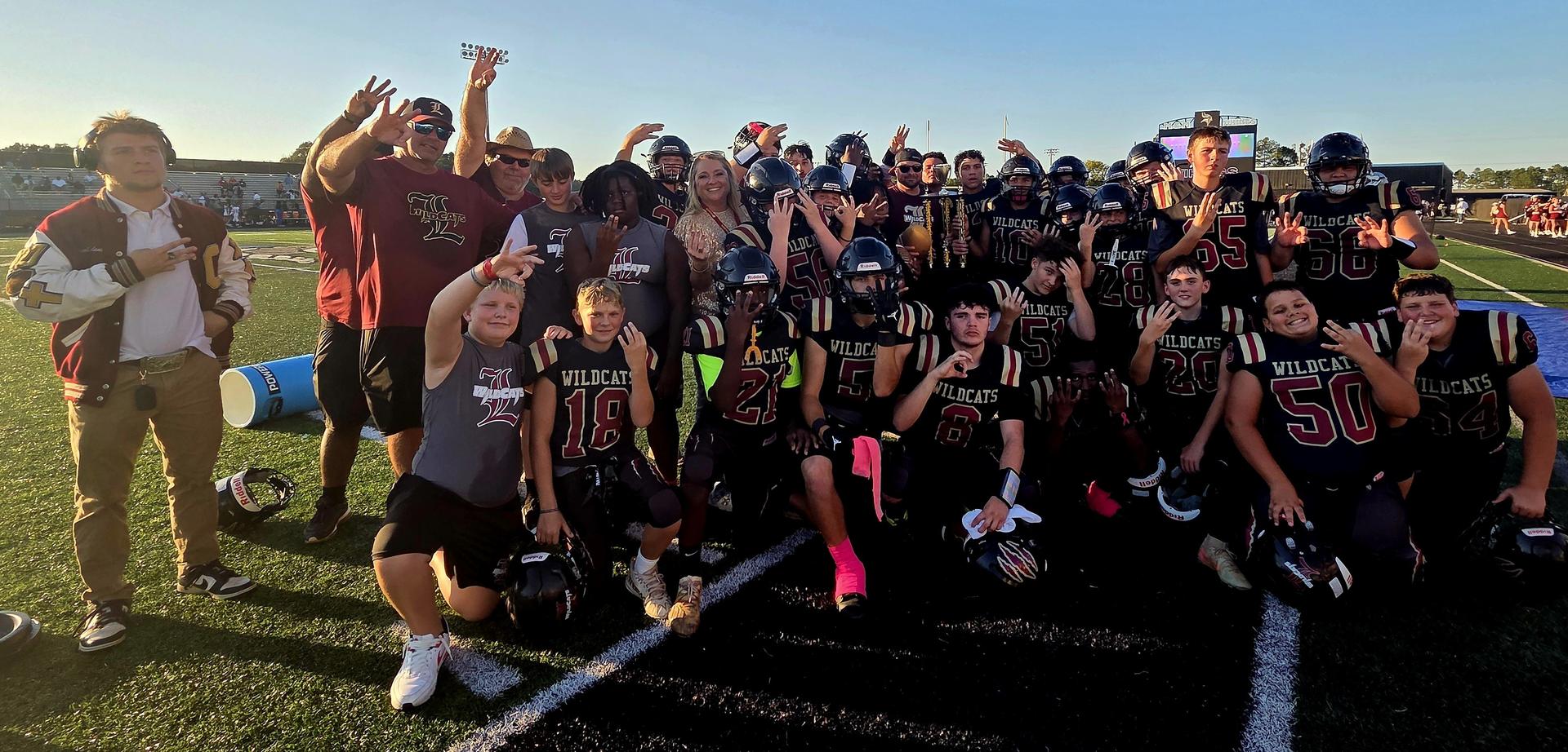 Middle school football champions are Lott Middle (left) in the small division and Causey Middle (right) in the large division. |